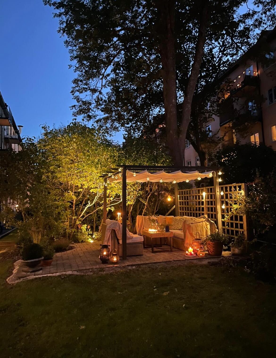 För de som önskar att förlänga sina kvällar på innergården så finns det även en värmelampa i källaren med tillhörande förlängningssladd.